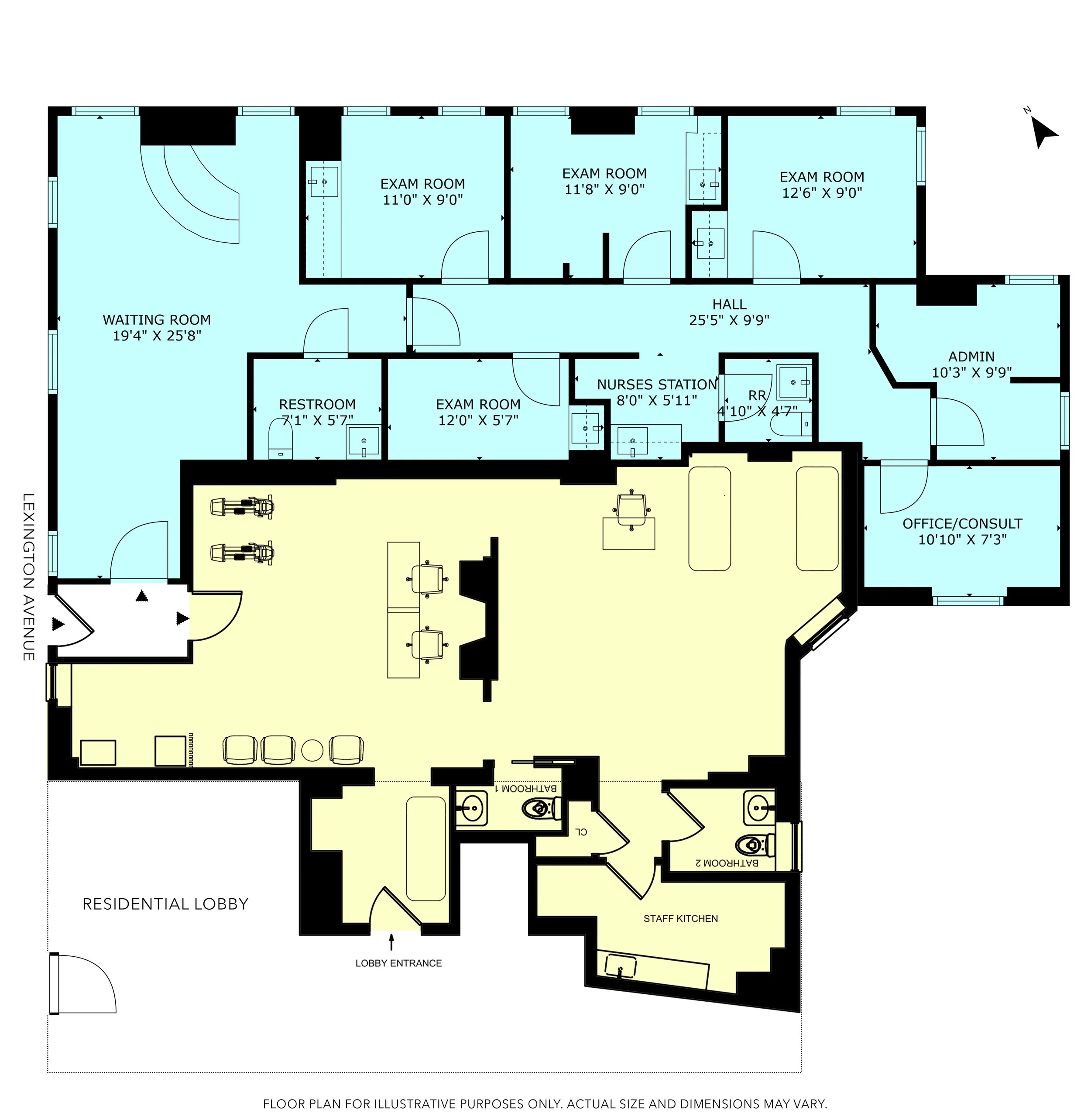 Available for sale, 901 Lexington Avenue, Suite B is a ground floor medical suite located inside a full-service co-op building. This renovated space features vinyl plank flooring, central air conditioning, and a separate street entrance with no stairs.