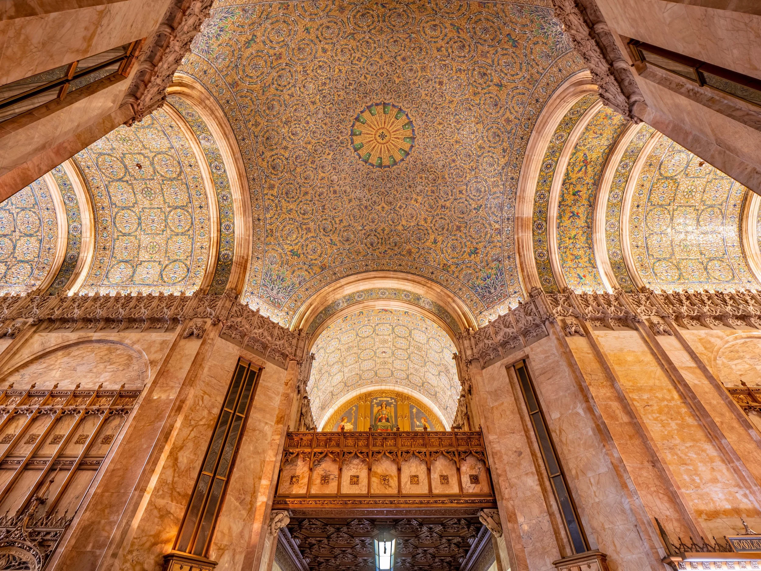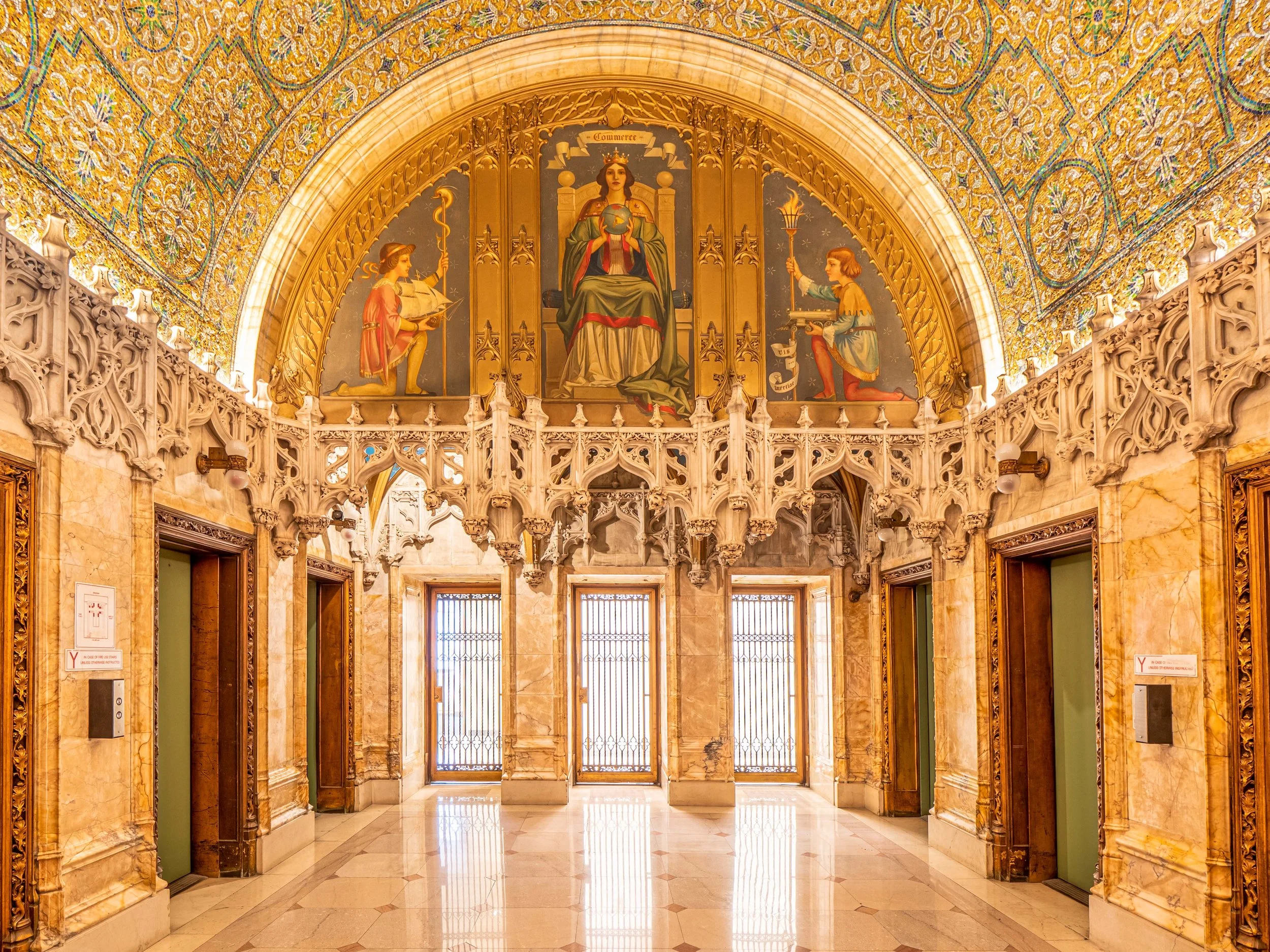 The building’s façade and finishes were heavily influenced by the owner, Frank Woolworth’s vision of his spiritual self as a descendant of medieval merchants. The cathedral-like lobby with rounded arches and mosaics of blue, green, and gold received universal acclaim.