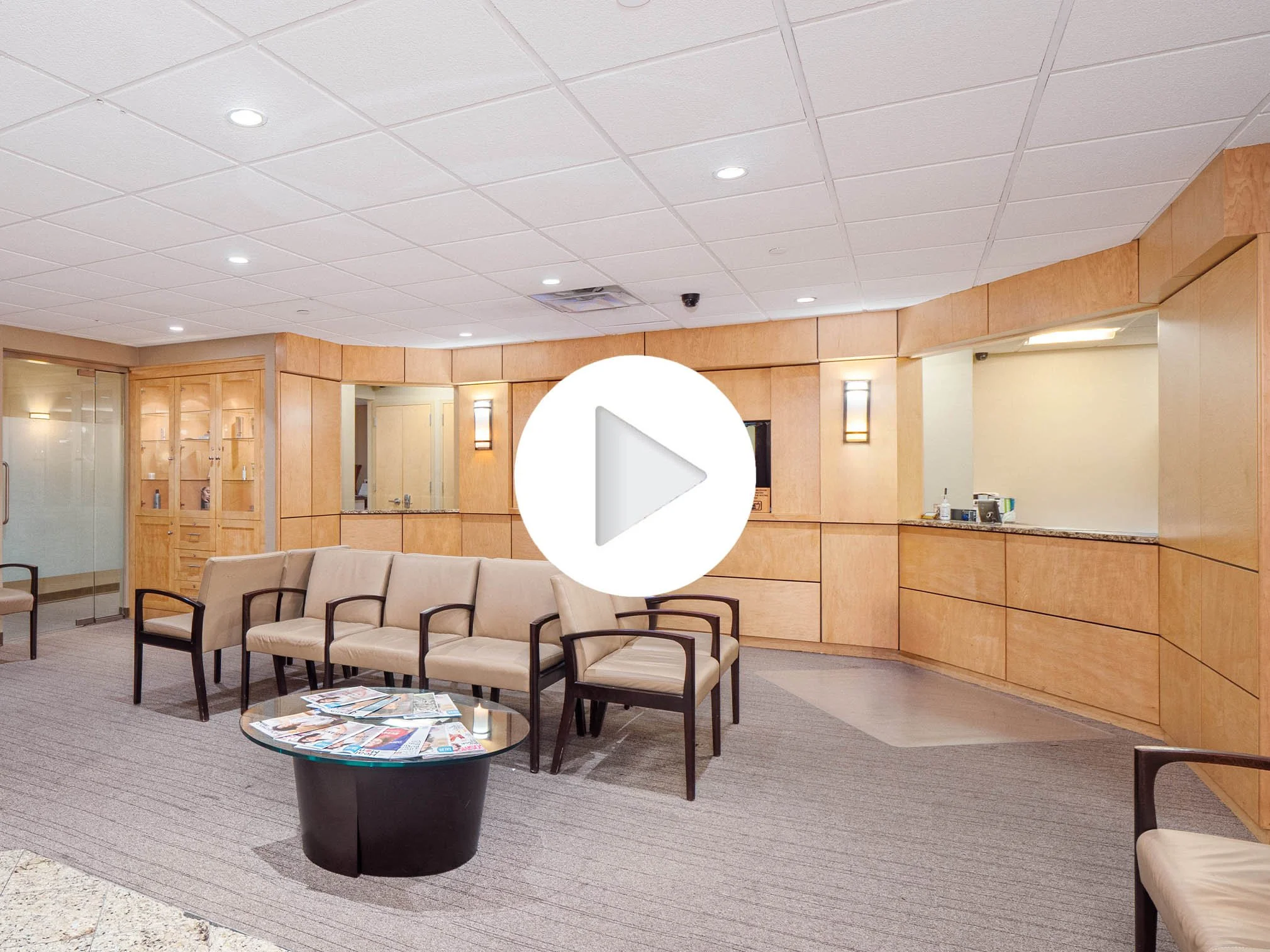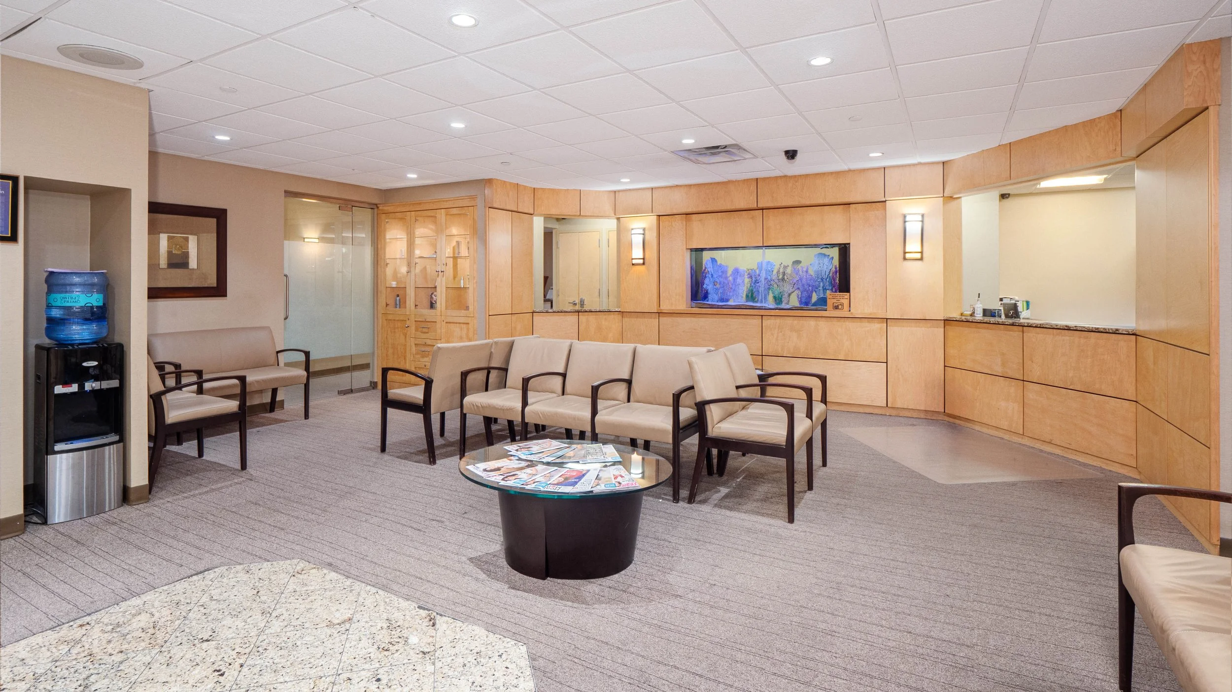 An abundance of recessed and overhead lighting illuminate the space, creating an inviting ambiance conducive to productivity and patient comfort.