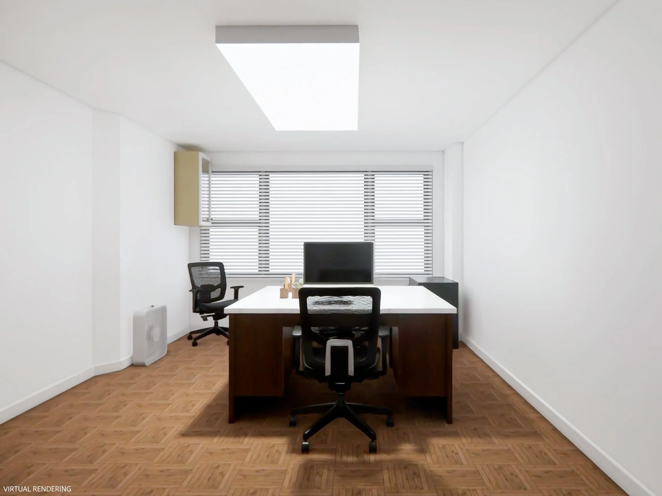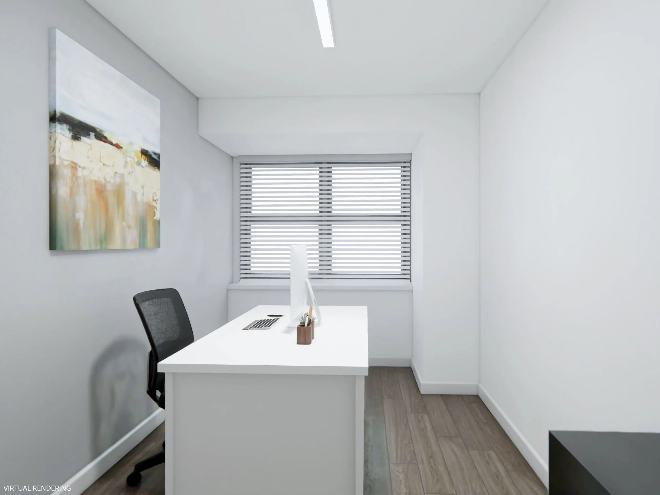 A nearly identical 3D-rendered video tour representing the space in its current condition.