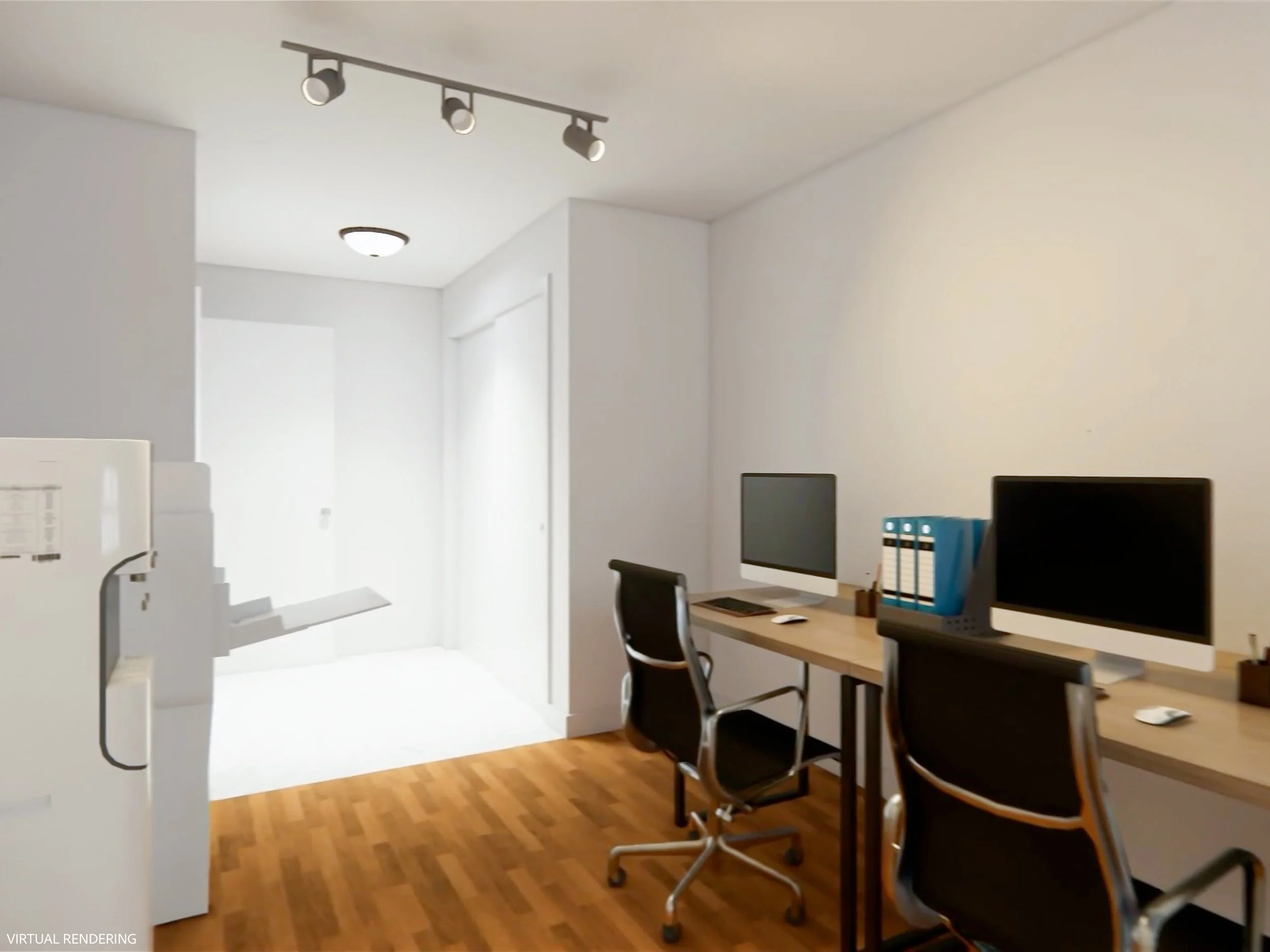 A nearly identical 3D-rendered video tour representing the space in its current condition.