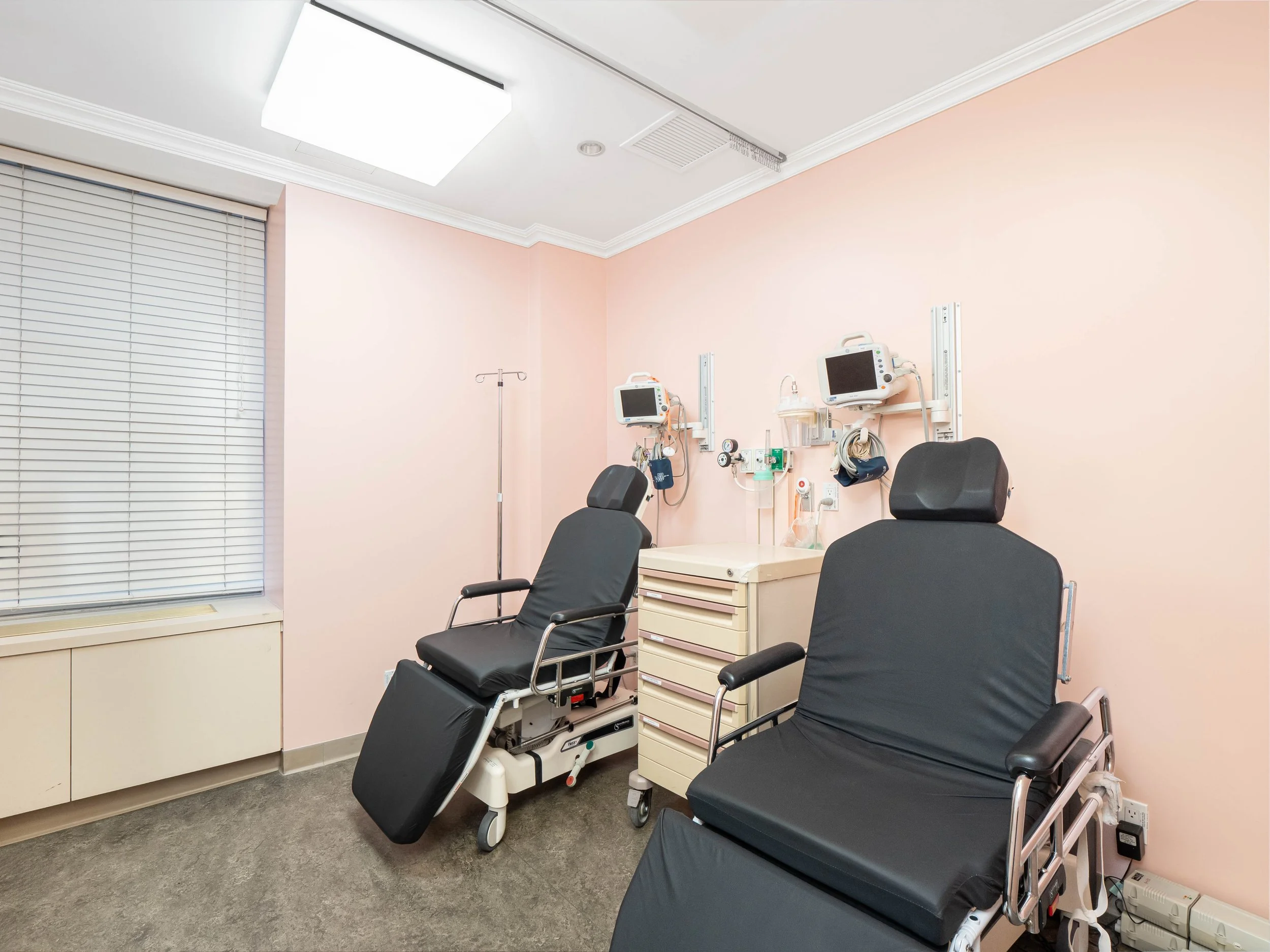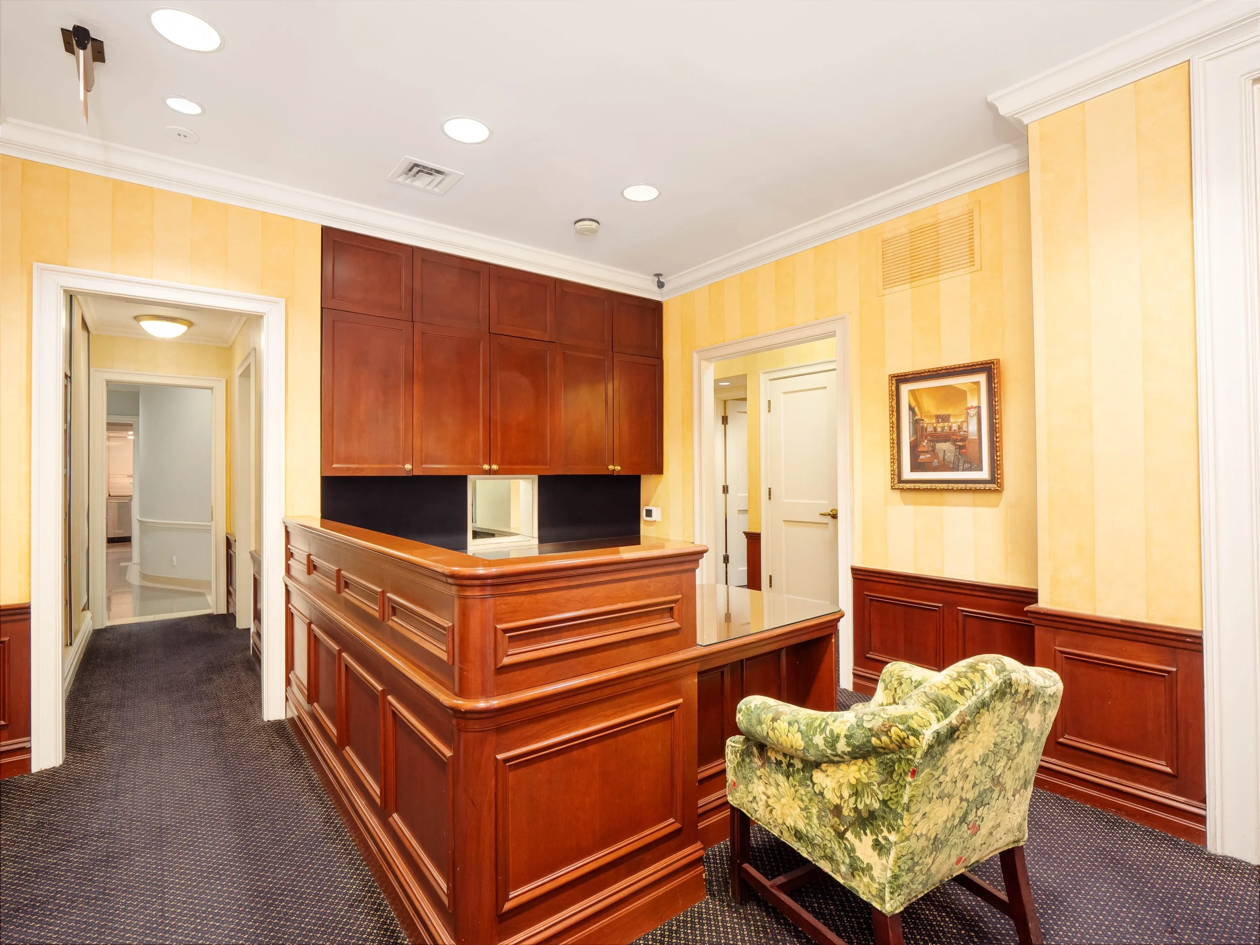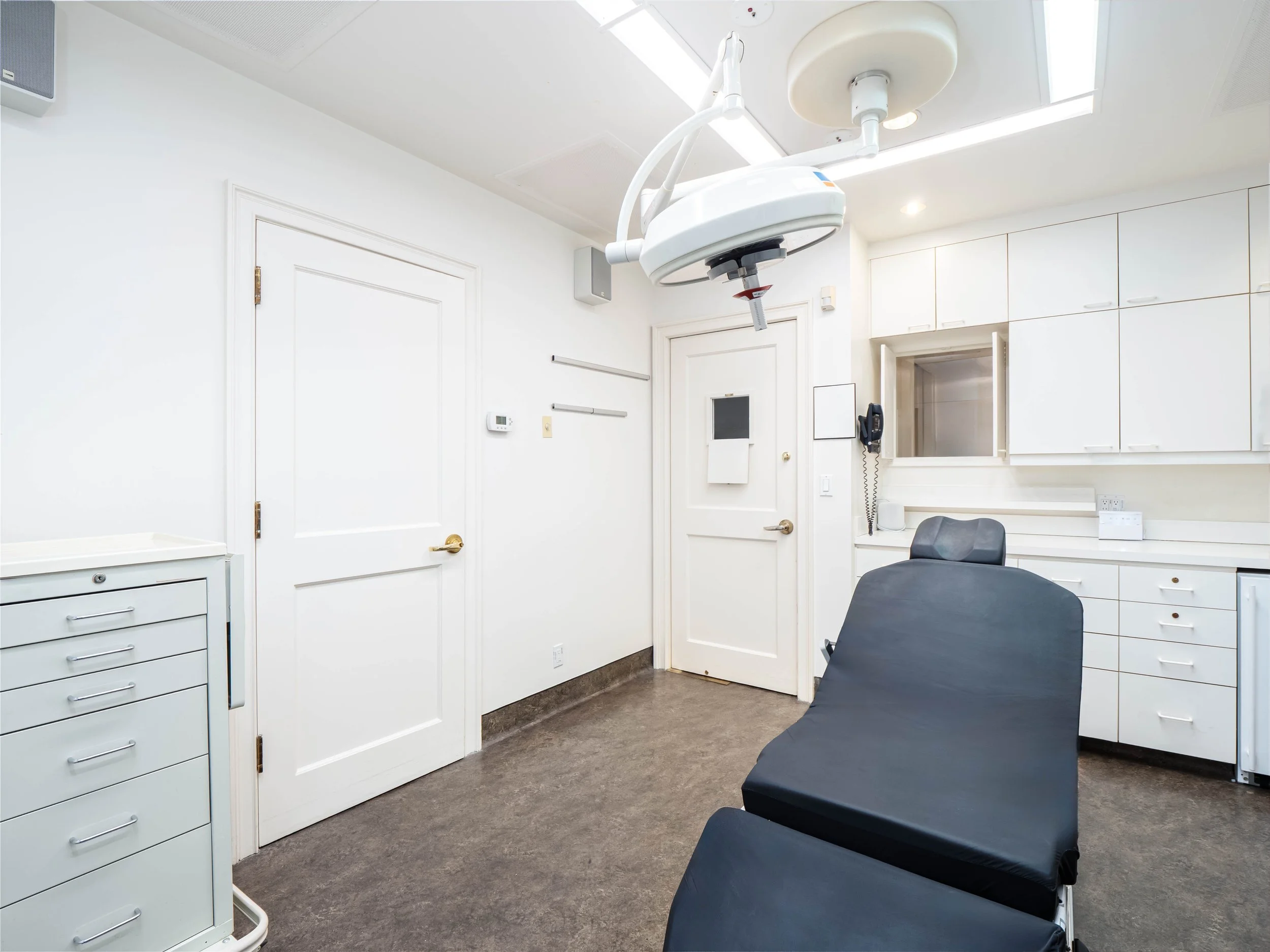 Additional highlights include dual access via Park Avenue and the residential lobby, three-zone central air conditioning within the medical portion, and a HEPA filter for the operating room. This suite is wired for a security system and features speakers throughout the medical portion.