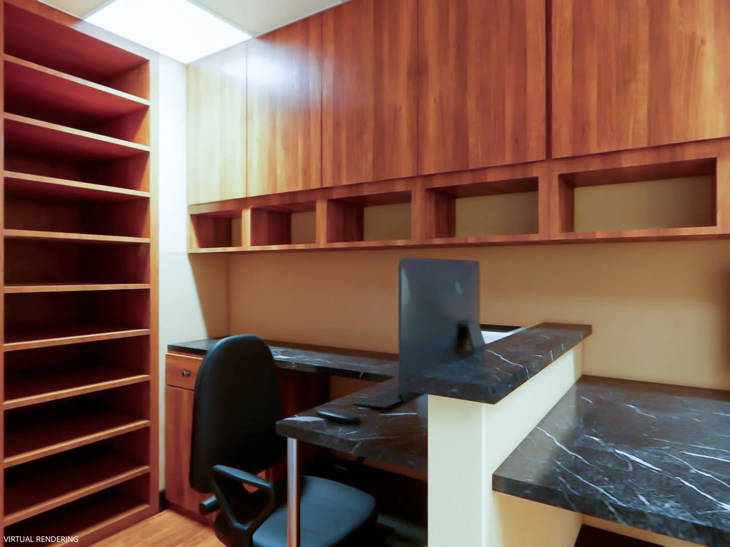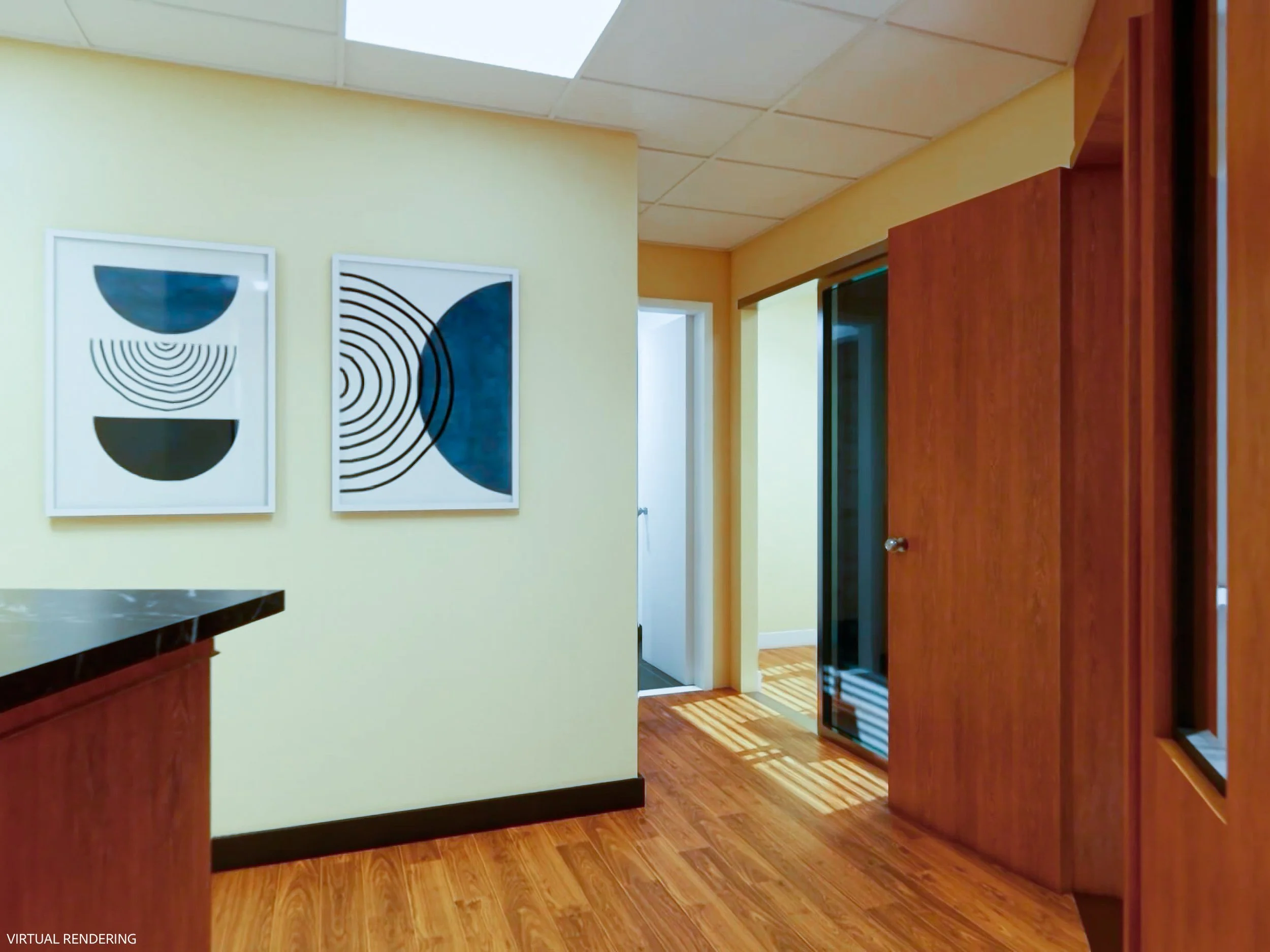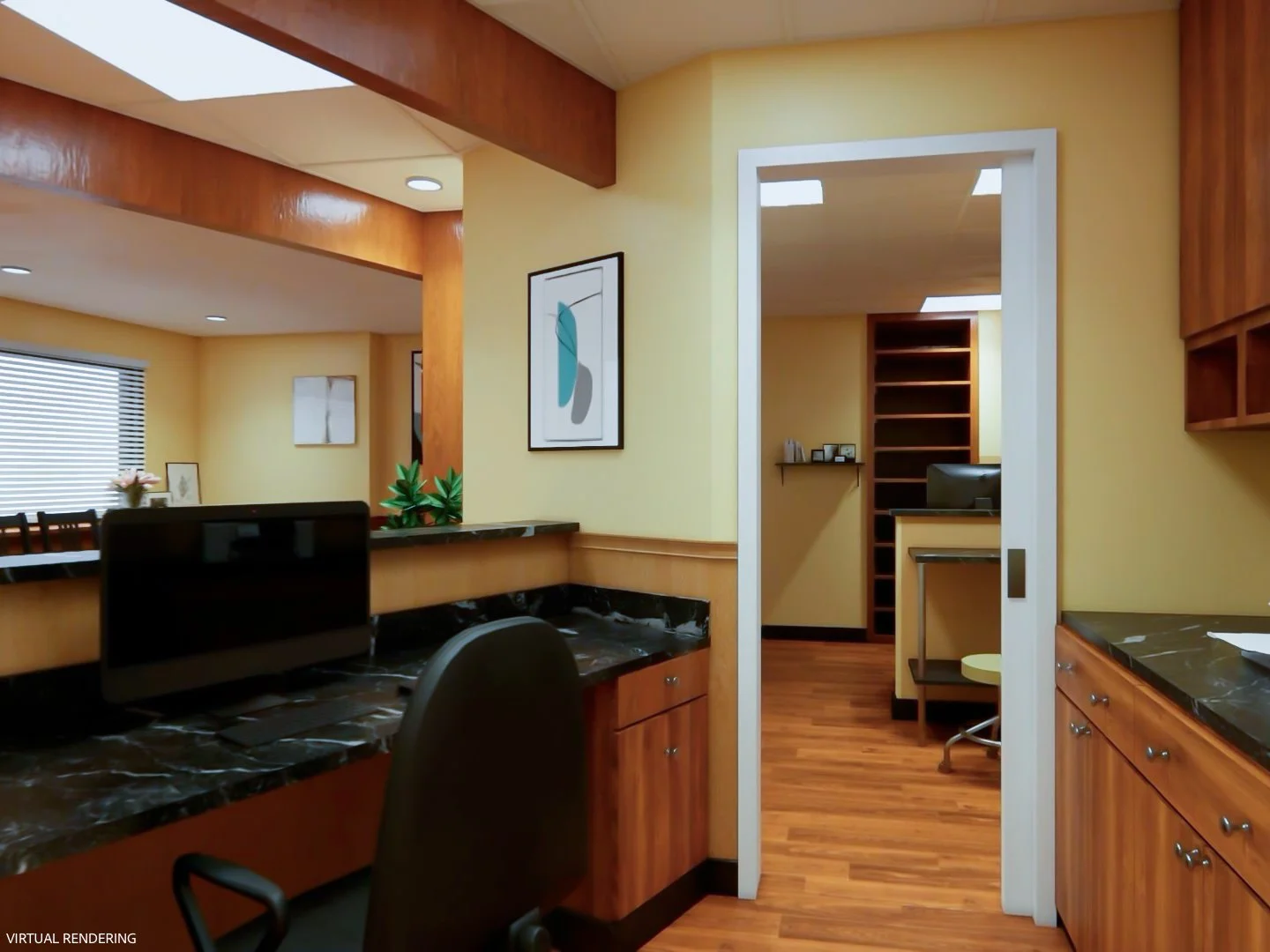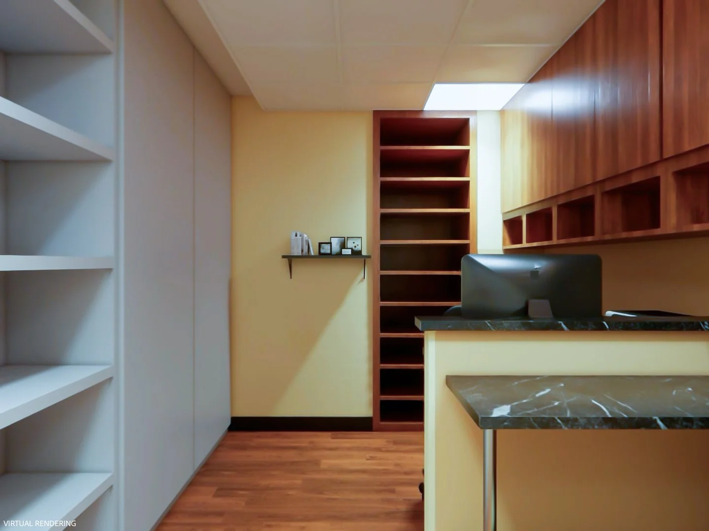 A nearly identical 3D-rendered video tour representing the space in its current condition.