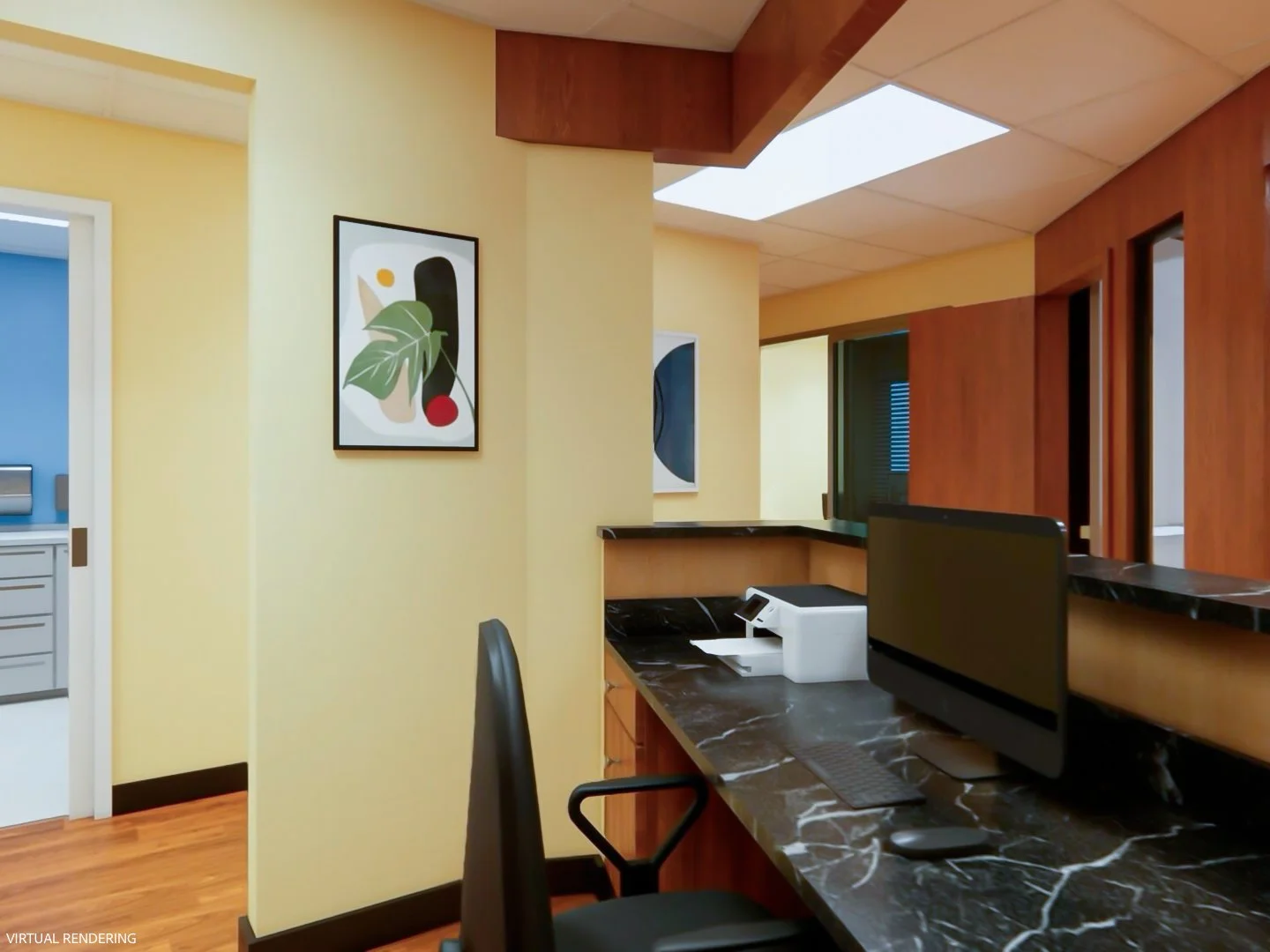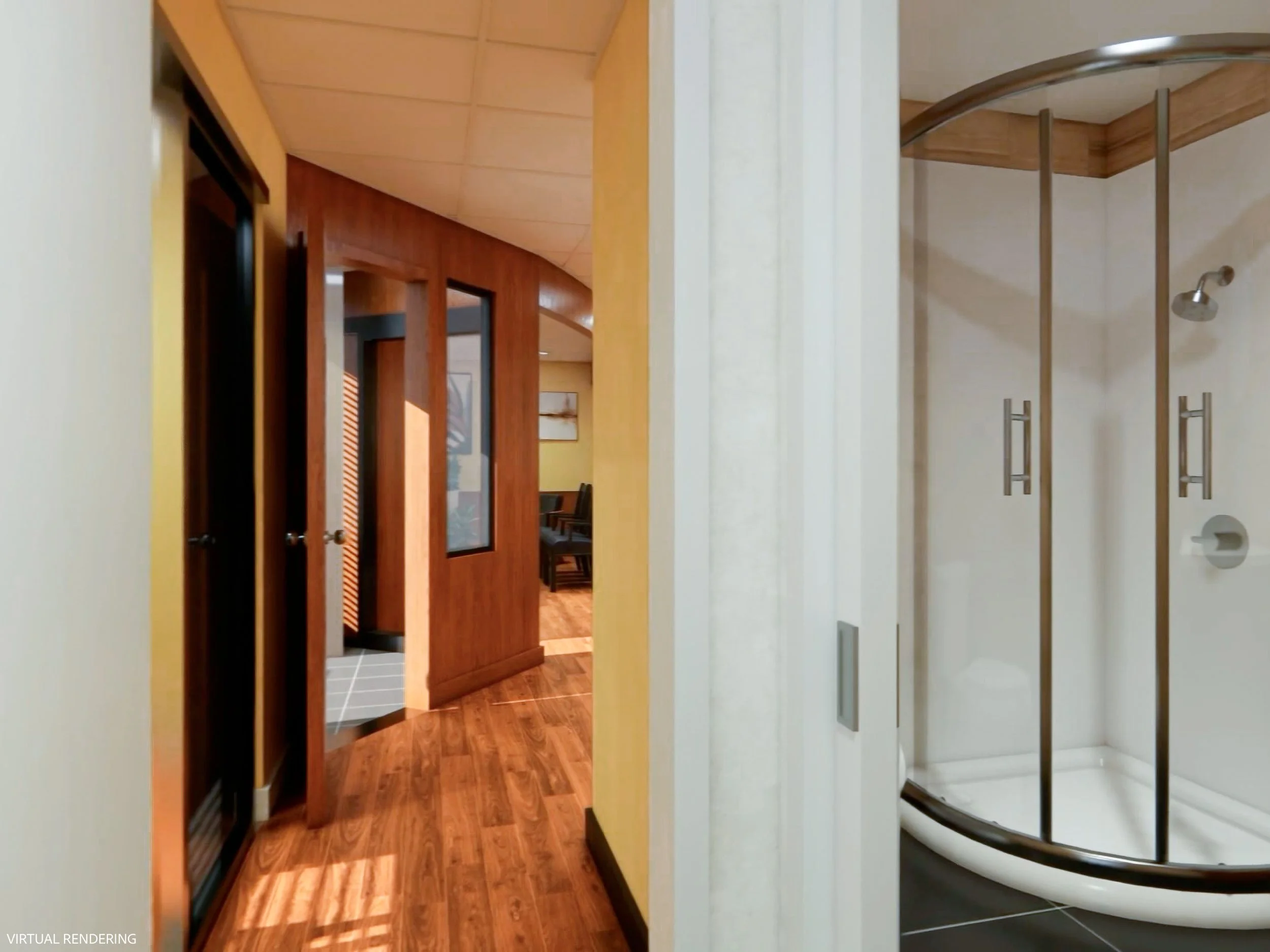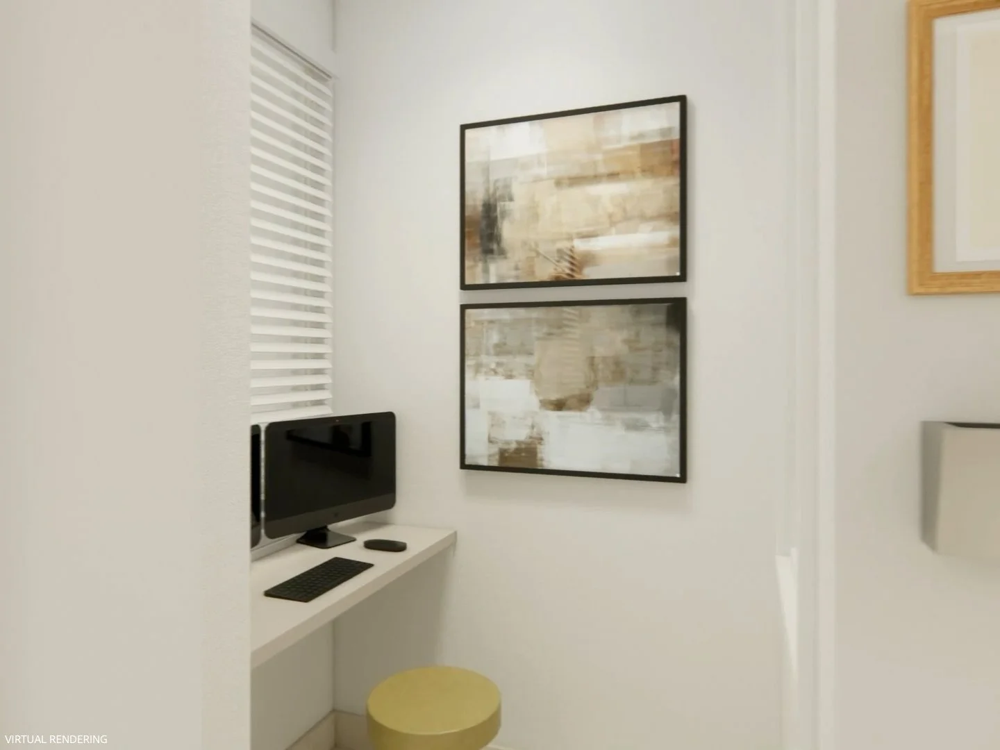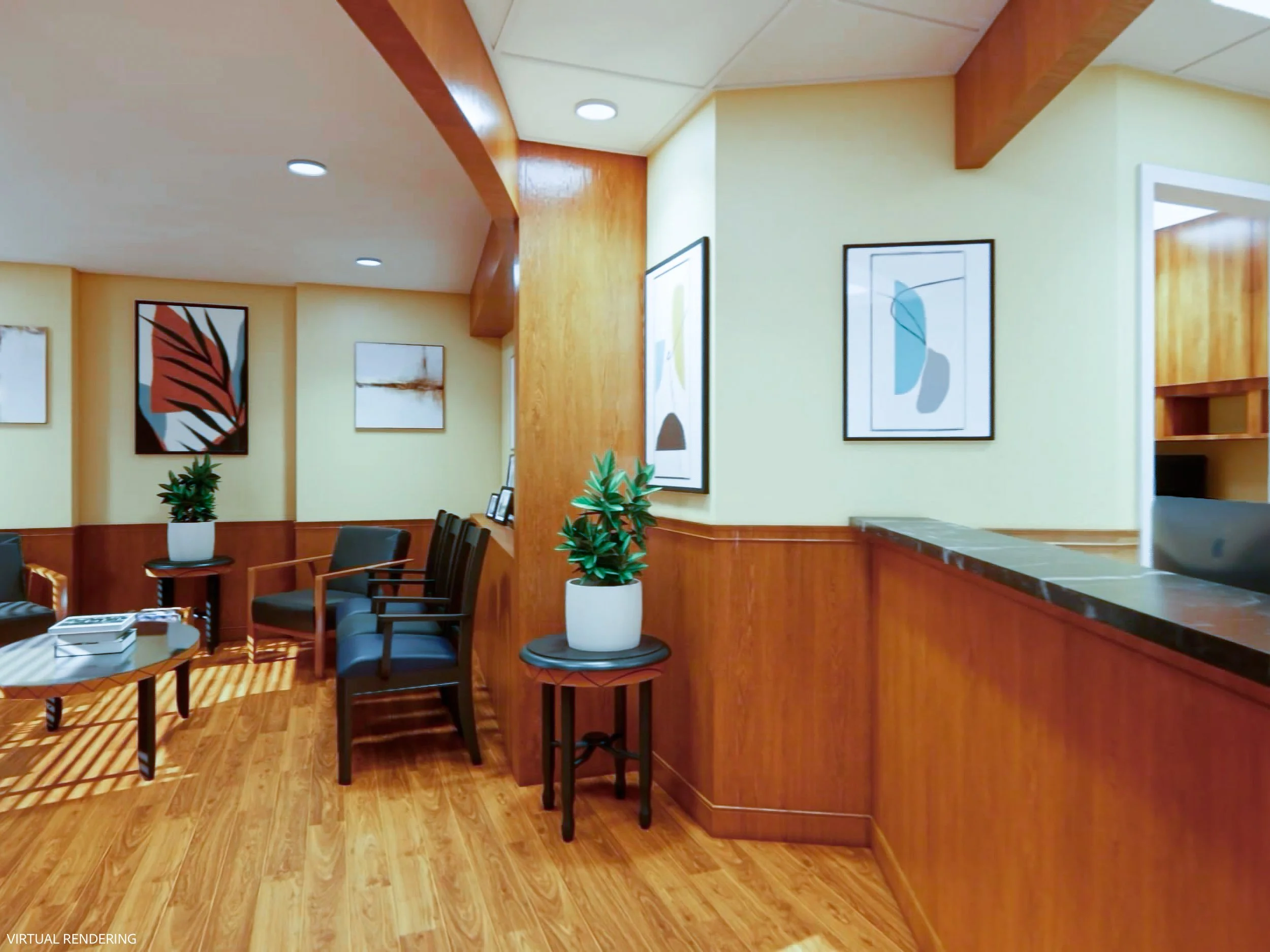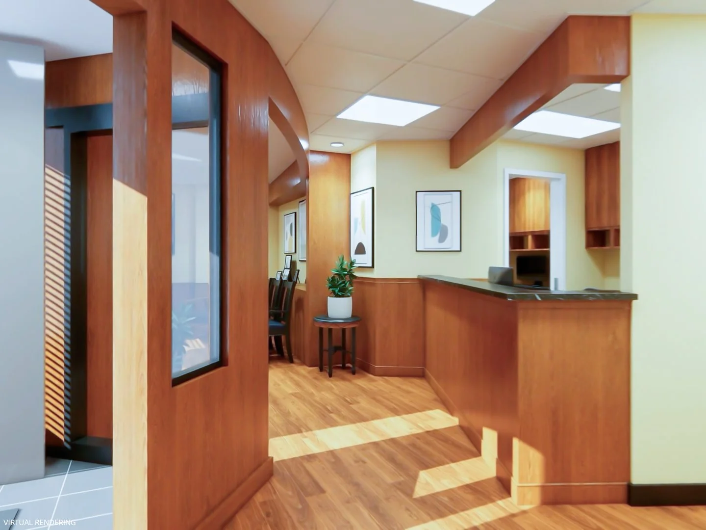 A nearly identical 3D-rendered video tour representing the space in its current condition.