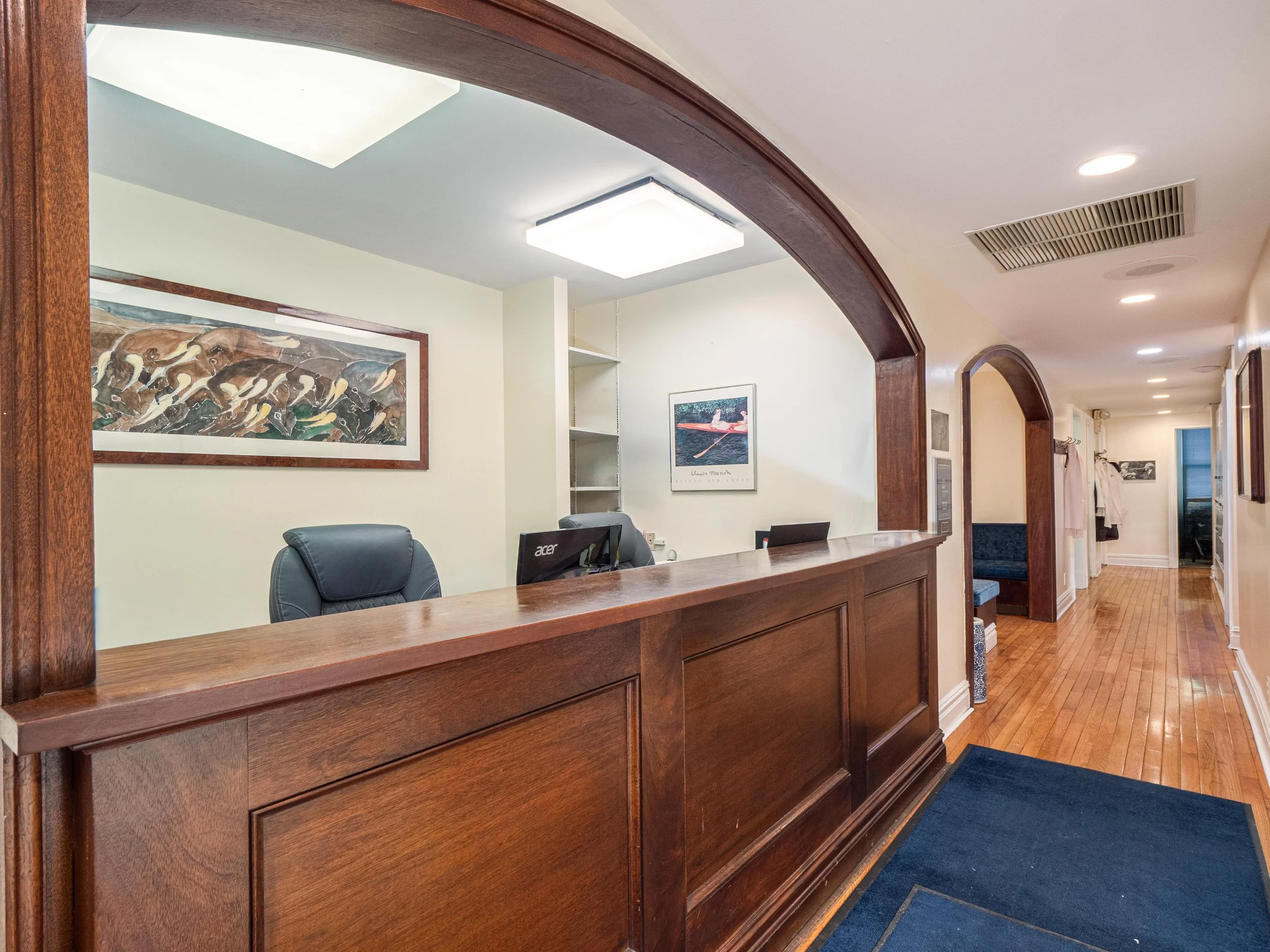This medical suite features a private street entrance on East 80th Street, with overhead/recessed lighting and hardwood flooring throughout.